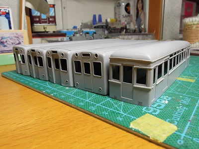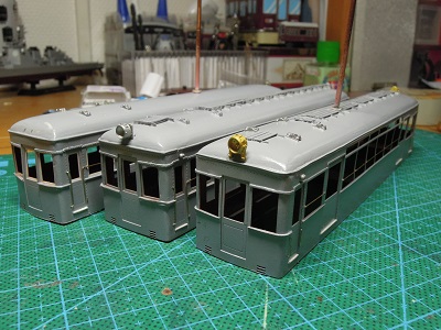 ・車体箱組[試作版](2020/6/27~2020/6./30) 塗装を控えた阪神車両群。 |