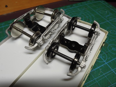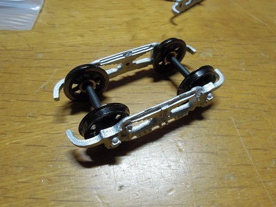 ・走行系組立[試作版](2020/7/6~2020/7/9) 非動力側台車。 カツミの車輪を使用しています。 |