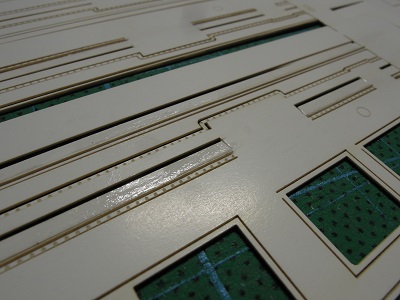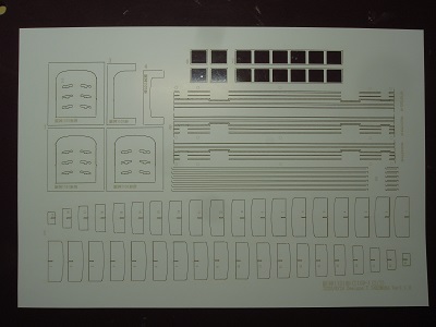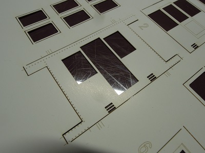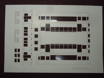 ・車体組立[試作版](2020/7/25~2020/7/26) 車体の組立に入ります。 まずは窓セルを貼り付けます。 |