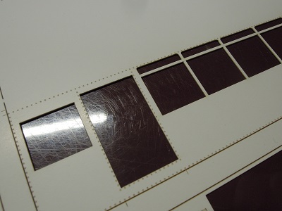 ・阪神1101形(1108,1109用)型紙[量産版] そうこうしているうちに、量産版の型紙が出来上がって きました。 大きな違いは、リベットの凹表現を追加です。 凹をガイドにして針で突き、型紙を裏返して使用することで、 リベットを凸表現にすることも可能です。 |