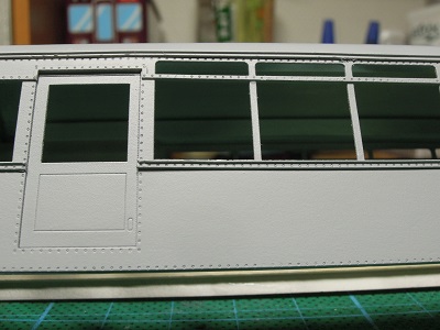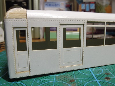 ・車体箱組[試作版](2020/6/20~2020/6./21) 側面客用ドアと客間度周辺の俯瞰。 |
