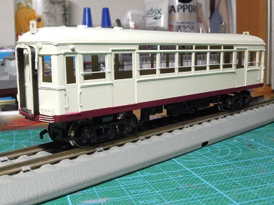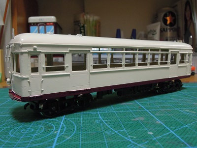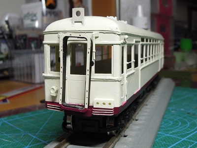 ・車体塗装[試作版](2020/7/12) 週末になったので、再び塗装フェーズへ。 裾のマルーンを塗装しました。 塗料はGSIクレオスNo.100:マルーンを使用。 |