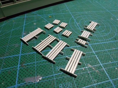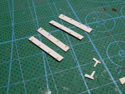 ・車体組立[試作版](2020/7/13) 屋根上のランボードはスノコ状です。 こちらも型紙のパーツで組み上げます。 |