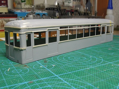 ・車体組立[量産版](2020/8/12) 窓枠を接着して、保護棒を取り付けました。 |