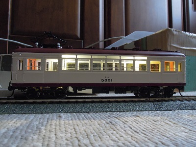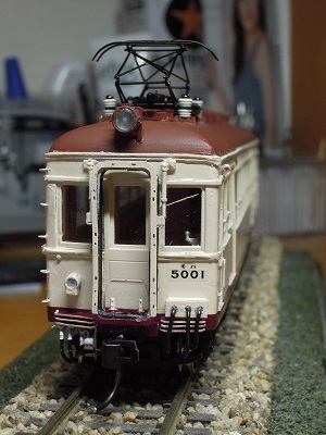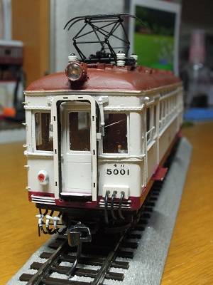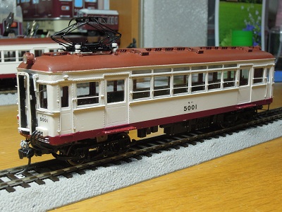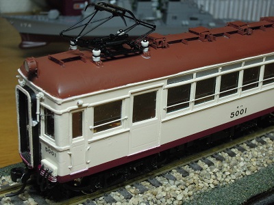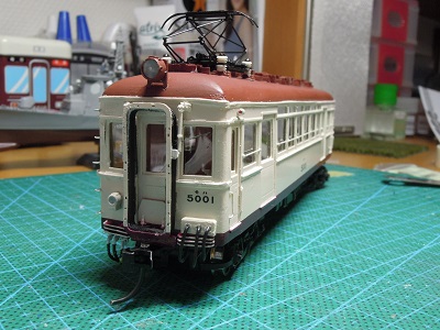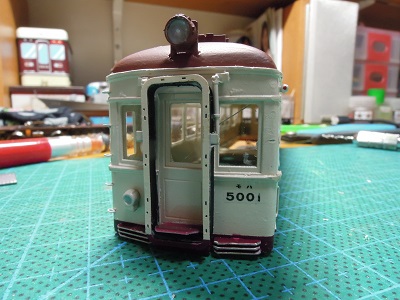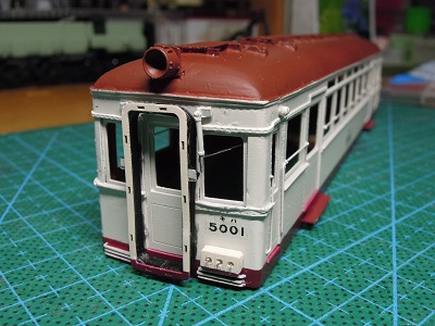・車体組立[量産版](2020/11/22) 今回の5001は左側になります。 各車の製作記は別途掲載します。 ヘッドライト点灯化に向けて、配線用の穴を開けています。 |