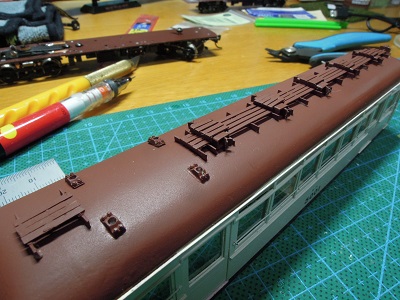 ・車体塗装[試作版](2020/7/16~2020/7/19) 再び試作版に戻ります。 屋根上を塗装します。 |
