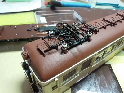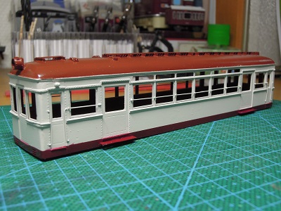 ・車体組立[試作版](2020/7/25~2020/7/26) 屋根上は艶消しクリアーを吹いて、艶を落としました。 |