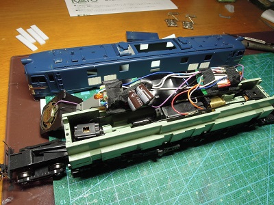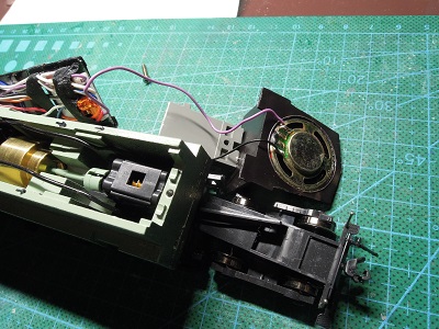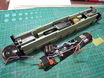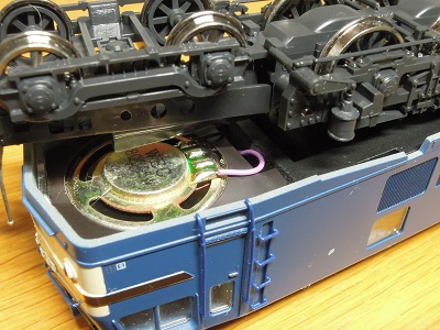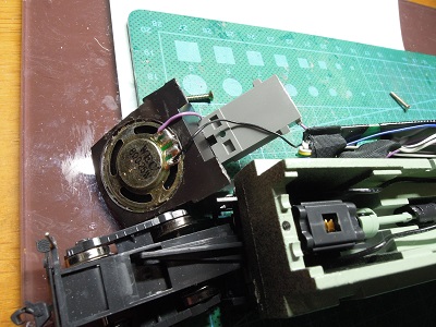 | ・車体分解(2020/12/23) 裏返すと、スピーカーが付いています。 DCC化されているのでしょうか? |