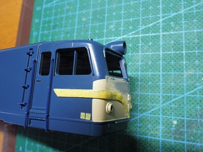 | ・車体加工(2021/4/18) ひげ帯は製品の表現を活かすため、加工で傷が 付かない様にマスキングしておきます。 |