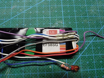 | ・車体組立(2021/4/25) 基板を取り外してしまったため、ライトを点灯するように 配線が必要となります。 余ったガラエポ基板にLEDと制限抵抗を実装して配線 しました。 |