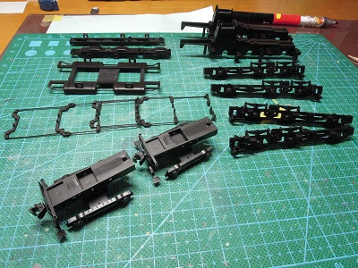 | ・車体塗装(2021/4/18) 塗装した台車パーツを組立てていきます。 |