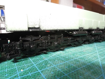 | ・車体塗装(2021/4/18) ウエイトブロックも底面に艶消し黒を吹いておきました。 |