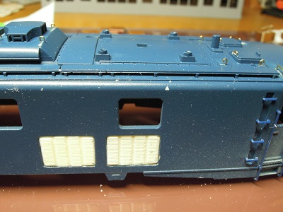 | ・EF58−69 ・いつもお世話になっている運転会での競作のお題と なったことで、急遽1両製作することになりました。 と言っても、KATO製品の改造で、保有のプラ製機関車と 同様の工事を施しました。 @手摺類は真鍮線化し、エセプレステージ化を図る。 Aワイパーのパーツ変更(エッチング品) B特定機に伴う抵抗器カバーサイズの変更と、フック 再現 C特定機に伴う側面フィルタ形状の変更 Dブルトレ牽引対策元空気溜引通し(P形化) E床下の塗装 |
