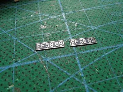 | ・車体加工(2021/4/18) ナンバープレートは選択式でしたが、パーツの隙間が 気になるので、一旦埋めてれたを貼ることにしました。 選択式ナンバーパーツを接着して、ナンバーを削り落とし、 隙間をパテで埋めて平滑にします。 |