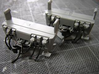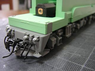 | 床下組立 まずはスカート組立。 外していたカプラーとスノウプロウを取り付け、エアホース類も再実装 します。 |