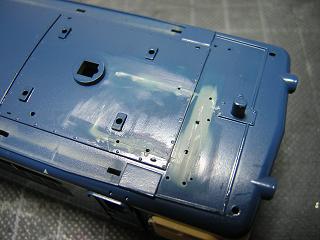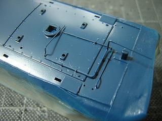 ・手摺塗装 青塗装完了。 塗料はマッハのNo.13G:直流電機・特急客車・スカ型艶青を使用 しています。 |