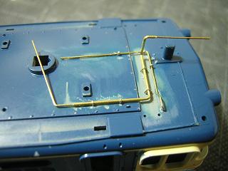・屋根上配管 先に製作したEF65-1035同様、屋根上配管を真鍮線で作りこみます。 Φ0.5mmの精密パイプとΦ0.3mmの真鍮線を使用しています。 |