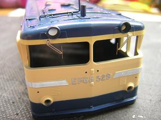 ・EF65−529 出雲牽引用として購入しましたが、製品に付属パーツを付けただけの 状態でした。 今回、手摺の真鍮線化や床下塗装などの小加工を加えて、最近導入 した電機機関車とレベルを合わせようと思います。 今回は以下の改造予定です。 @手摺類の真鍮線化 Aエッチング製ワイパーへの換装 B床下塗装 C屋根上配管の追加(簡易改造) D運転席の色差し |
