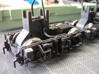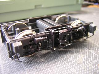 ・台車塗装 台車枠、スノウプロウに艶消し黒を吹いています。 |