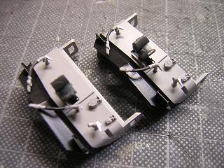 ・スカート塗装 先にGM9:ねずみ1号を吹いたスカートにホースやコック類に色入れを しておきます。 |
