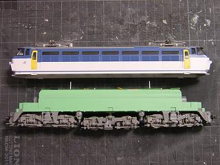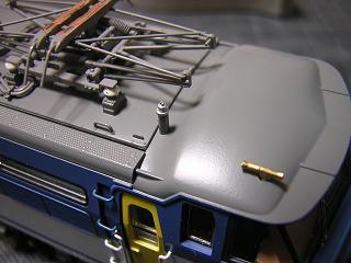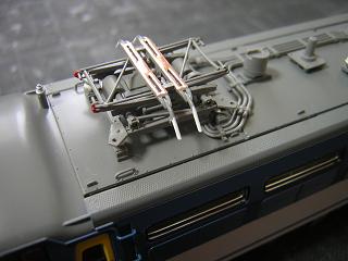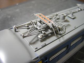 | ・車体組立 パンタグラフ実装。 今回、PS22に交装する予定ですが、入手が間に合わなかったので オリジナルのPS17を載せておきます。 |