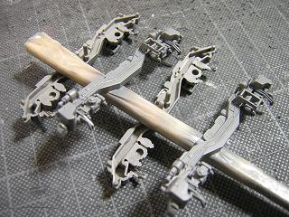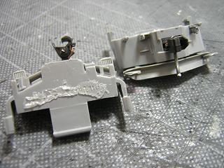 | ・台車分解 塗装に備え、台車実装パーツ(乗務員ステップ)を実装しておきます。 |
