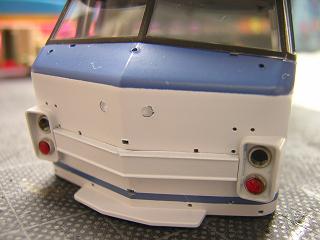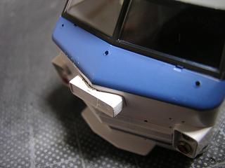 | ・車体加工(ナンバープレート) 製品では前面ナンバープレート部の表現は写真のようになって います。 知らなければ、これでもいいのですが...。 |