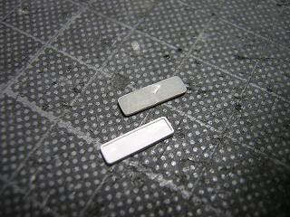 | ・車体加工(ナンバープレート) プラ引き伸ばし棒をカットし、断面を整えておきます。 あとは白系塗料をタッチアップする予定です。 |