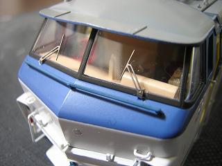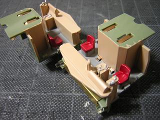 | ・運転台塗装 標準工事として、運転台に色指しをしておきます。 運転台にはGM4:国鉄クリーム4号、シートはGM29:京急バーミリオンを、 マスコン類にはGSIクレオスNo.8:銀を、床にはGM9:ねずみ1号を色差し しています。 ★ムサシノ製品より、EF66貨物更新機のシートって赤系なのですね。 2009-2/15 |