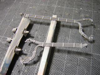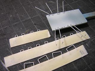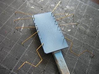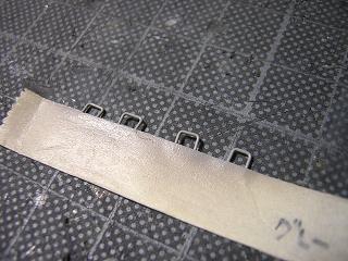 | ・手摺製作 エセプレステージ化ということで、手摺をΦ0.4mmの真鍮線で 作ります。 しかし、数が多い...。 |