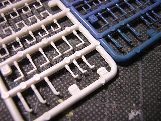 | ・手摺塗装 一部の手摺(フック類)は形状から真鍮線での再現が難しい為、 製品のプラパーツを使用します。 質感の関係もあり、こちらもプラ用の塗料を吹いておきます。 |