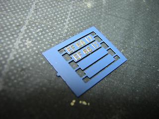・車体加工(ナンバープレート) しかしムサシノ製品を見るとこのような表現になっています。 実車では、元々の台座を撤去し、単にプレートだけになって いるのですね。 見てしまった以上は、それらしく表現したくなってしまいます。 |