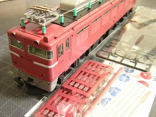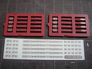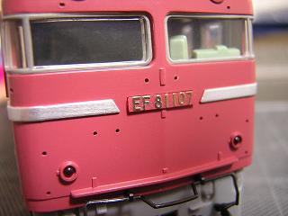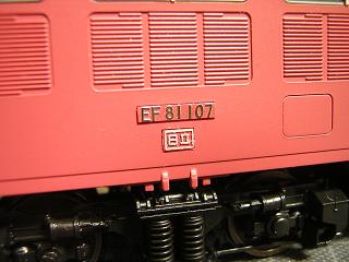 | ・製品について 種車はTOMIXのEF81、一般色(ローズ)です。 今回の製品では、ナンバープレートがメタルインレタによる選択式に 変更されており、個人的には本製品最大の改良点ではないかと 思います。 |