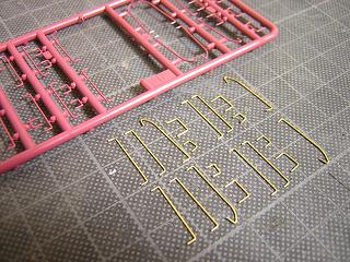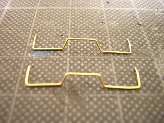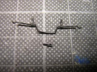 | ・連結器開放てこ取付 付属パーツを見本にΦ0.4mmの真鍮線を曲げてみました。 |