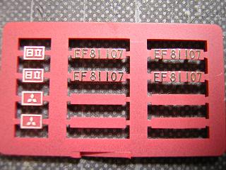 | ・ナンバープレート作成 冒頭でも記載しましたが、今回の製品の改良ポイントである メタルインレタによる選択式ナンバープレート。 S氏のご希望により107号機としました。 上がナンバープレート、下がメタルインレタです。 このメタルインレタの文字サイズはエンドウ製よりやや小さく 使い勝手が良いです。 当方もKATO製EF65PFに使用しています。 |