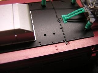 | ・ステップ取付 説明書どおり、台車の所定穴に差し込みます。 本製品のパーツ勘合具合は中々良く、特に接着剤は不要でしたが、 後々のことを考えると、ゴム系接着剤で固定しておくほうが個人的 には良いと思います。 |