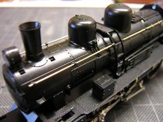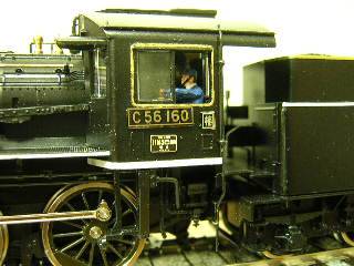 C56-160号機全景(非公式側) デフの縁取り、煙室戸ハンドレールおよびつかみ棒にも金を 色差しします。 デフの縁取りは、半光沢を吹く前に色差しを行っています。 '05-1-10 |
