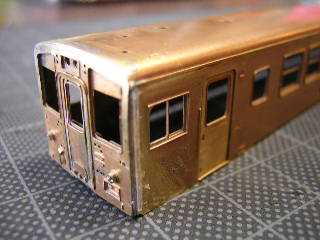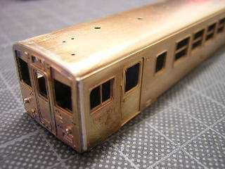 15)ボディのはんだ付け作業完了 タイフォンカバーと幌枠を取付け(これは瞬着使用)、ボディの 作業はほぼ完了です。 後は、削った雨樋の再生が必要ですが、一旦ここまでにします。 フラックスの除去の為、中性洗剤等で水洗いしておきました。 (本当は酸洗いが望ましい) 以上'05-5/23作業 |