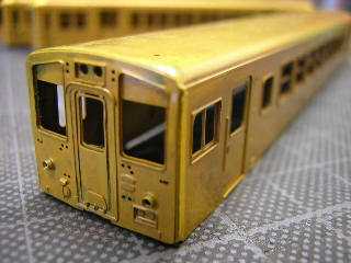 1)キット内容です。 素材は、KitcheNのキハ33-1000車体素材(017C)です。 真鍮キットですが、折曲げ済みのため比較的簡単に組むことが 出来ます。 はんだ付、瞬間接着剤どちらでも組めますが、前回塗装後に 部品が外れる等、苦い想い出がありますので、今回ははんだ 付けで組立てました。 なお別購入として、テールライトはTAVASA(PN009)、角型ベンチ レータはTOMIXを、信号炎管やJR無線アンテナはキハ58等の 残品を使用する予定です。 また、動力は指定どおりKATOのキハ20用を使用し、カプラ-は TOMIXのTNカプラー(JC63)を使用予定です。 |