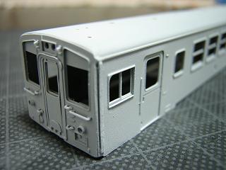 18)下地処理 プライマーを吹いて乾燥させます。 プライマーはマッハの「シールプライマを使用しています。 今回プラの部品を付けているため、グンゼの薄め液で割って エアブラシにて吹き付けています。 ちなみに奥は同時進行の新京阪P-6です。 塗装編は次回に続く。 ただ、実車画像を無くしてしまったので、調合とマスキングには 難航しそうです。 あと、デカールをどぉするか...。 '04-6/13記載 |