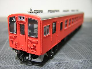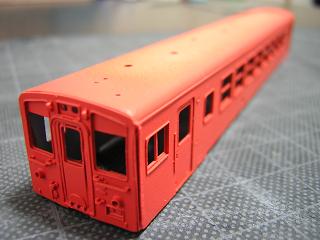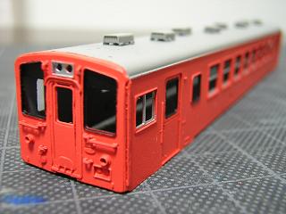 21)車体色塗装 首都圏色は、知り合いに頂いたホビーセンターKATOカラーの No.22朱色5号(キハ40・首都圏色)を使用しました。 '06-3/12 |
