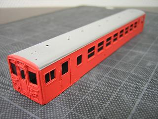 22)屋根塗装 車体をマスキングして、屋根を塗装します。 塗料はGM9(ねずみ1号)を使用しています。 |