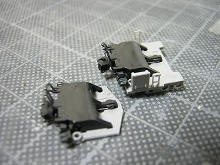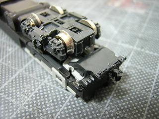 28)TNカプラー加工 連結器側も、台車に干渉しないように、不要部分を切り取ります。 |
