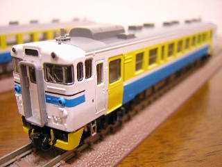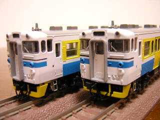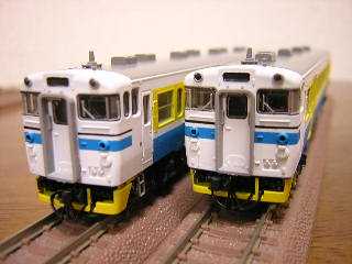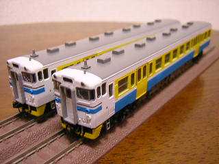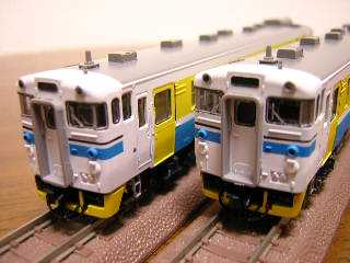 キハ40−2000 キハ40−2135(左)、キハ40−2137(右) ・ベースはKATO製キハ40-2000です。 色の塗り替えのみですが、カプラ-をTOMIXのTNカプラー(JC63)に 交換しています。 |