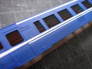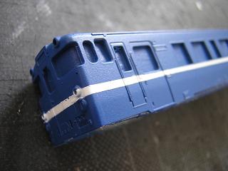 車体白帯塗装2 マスキングを剥がした状態。 |