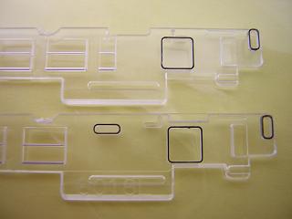 車体組立 側面窓ガラスパーツも実装します。 ATS標記はくろまやのインレタを使用しています。 |