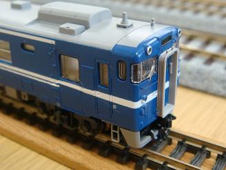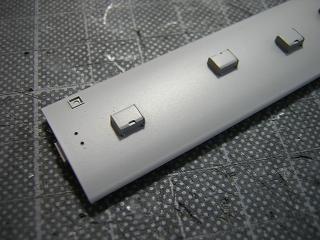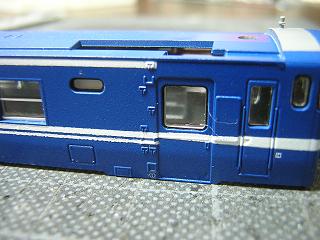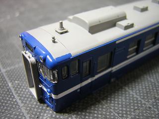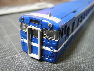 手摺実装 車体と併せて塗装した手摺を実装します。 接着は少量の瞬間接着剤を使用しています。 |