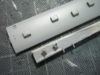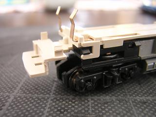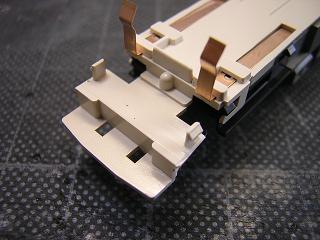 床下加工 シートをモールドしているパーツですが、TNカプラーのスカートと 干渉する為、両側を少々カットしておきます。 |