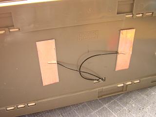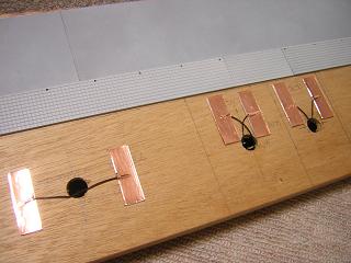 | ・モジュール側配線 建物と同様に、プラ板と粘着シートタイプの銅板を用いています。 |
