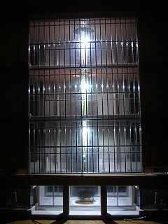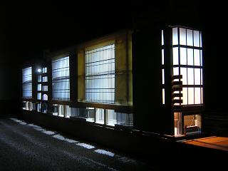 | ・詰所 窓にトレーシングペーパを貼るのは同様です。 各階に仕切りがあるので、階毎に貼り付けています。 |
